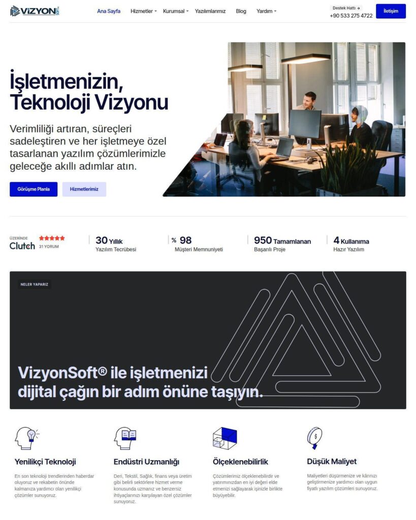 Yakın zamanda tamamladığımız vizyonsoft.com.tr projesinde olduğu gibi, markanın kurumsal kimliğini dijital ortama en doğru şekilde yansıtan özgün bir web sitesi hazırladık.