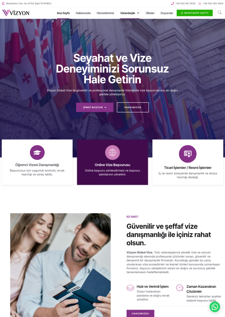• Sonuç: Vizyon Global Vize, artık müşterilerine güven aşılayan, akıcı bir kullanıcı deneyimi sunan ve marka değerini yükselten güçlü bir dijital varlığa kavuştu.